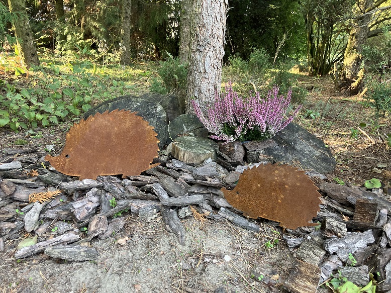 Rudawy odcień jeża świetnie komponuje się z zielenią ogrodową, a zwłaszcza wśród iglaków. Ozdoba jest odporna wszelkie warunki atmosferyczne z powodzeniem może dekorować ogród jesienno-zimową porą.
