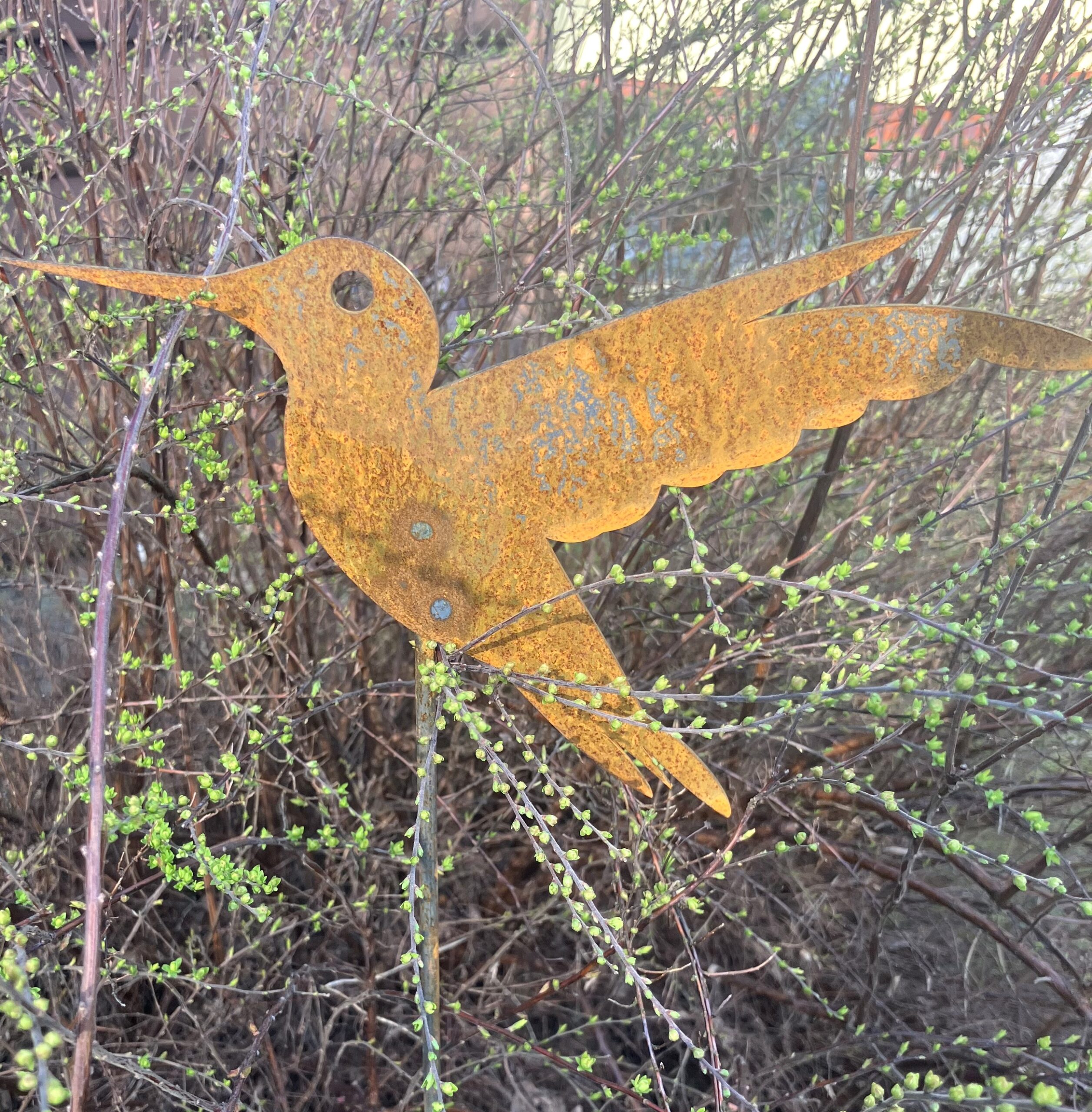 Koliber jest ciekawą dekoracją ogrodową. Tworzy wspaniałą aranżację z wysokimi kwiatami oraz trawą. Produkt nadaje się do całorocznej ekspozycji w ogrodzie gdyż jest odporny na wszelkie warunki atmosferyczne.