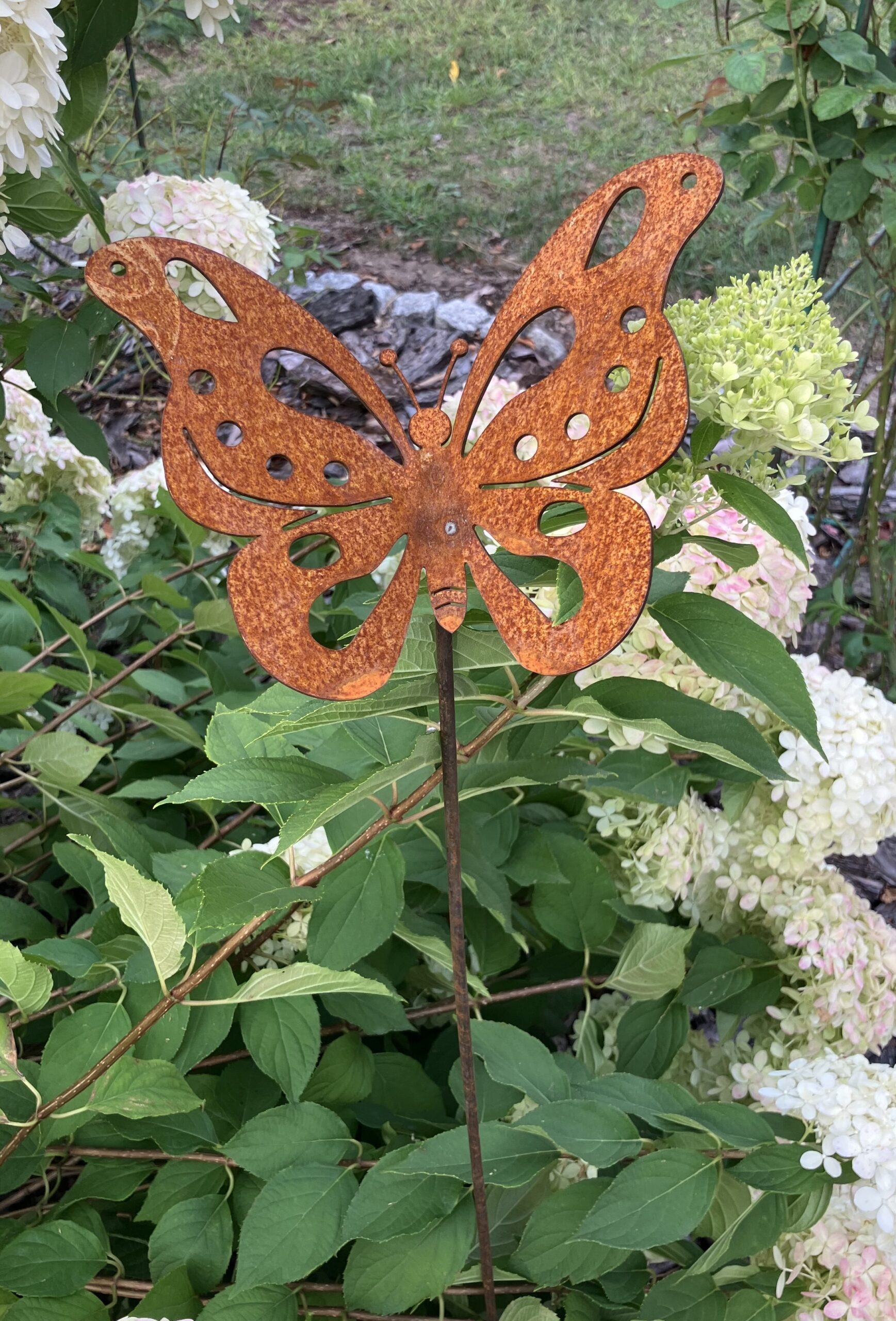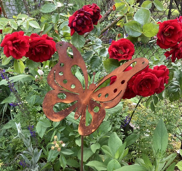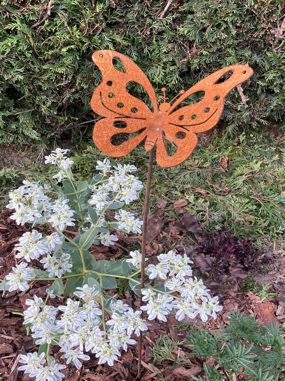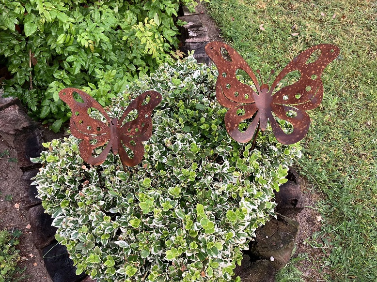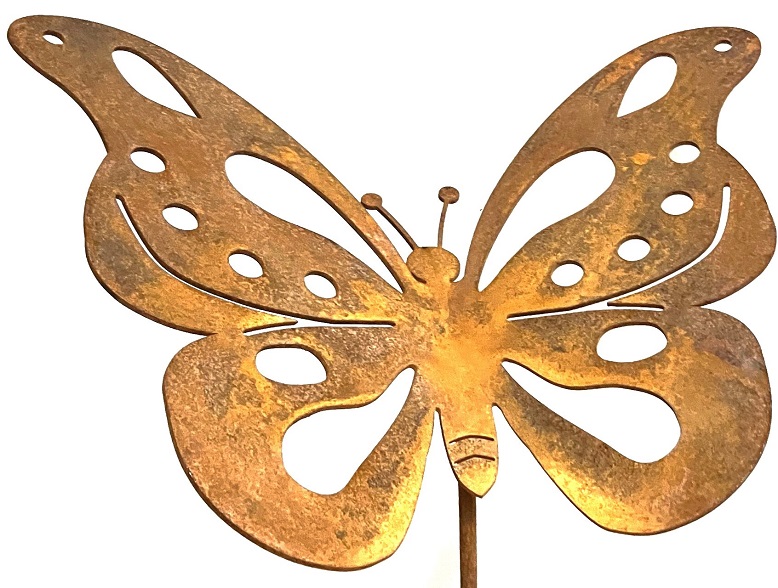 Motyl jest przestrzenną dekoracją ogrodu. Delikatnie wygięte skrzydła imitują motyla w locie. Dodatkowego uroku nadają mu ażurowe otwory na skrzydłach. Ozdoba pięknie komponuje się w każdym zakątku ogrodu zarówno wśród niskich jak i wysokich nasadzeń. Ozdoba może stanowić całoroczną dekorację, gdyż jest odporna na wszelkie warunki atmosferyczne.