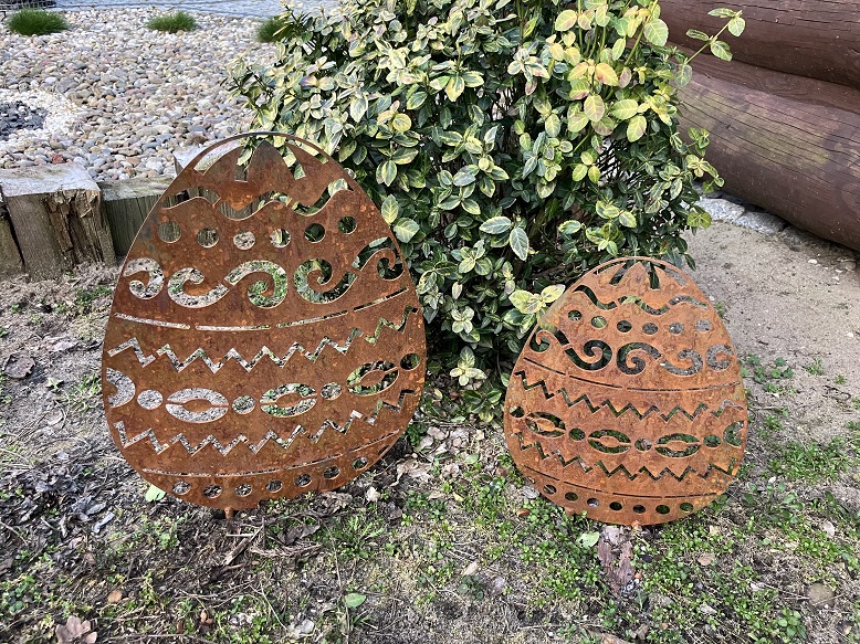 Pisanki są urozmaiceniem ogrodu w okresie świąt Wielkanocnych. W połączeniu z zielenią ogrodową oraz niskimi krzewami czy roślinami doniczkowymi stworzy ciekawą świąteczną kompozycję. Produkt nadaje się do ekspozycji w ogrodzie lub tarasie, gdyż jest odporny na wszelkie warunki atmosferyczne.