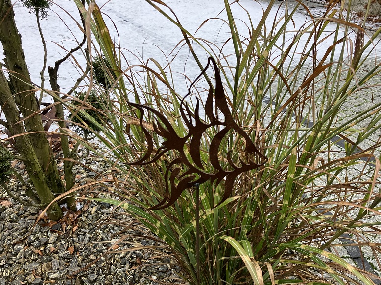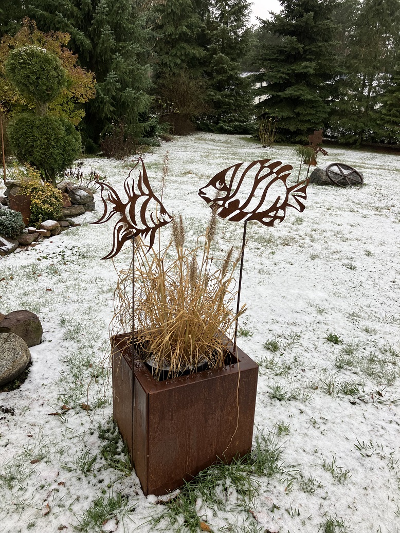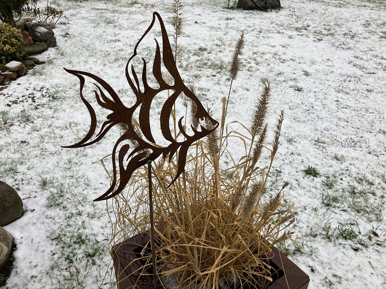 Ryba stanowi nietuzinkowy element dekoracyjny ogrodu. Szczególnie ciekawie prezentuje się w otoczeniu wysokich traw. Ozdoba może stanowić całoroczną dekorację ogrodową, gdyż jest odporna na wszelkie warunki atmosferyczne. W naszej ofercie dostępna również inna wersja ryby.