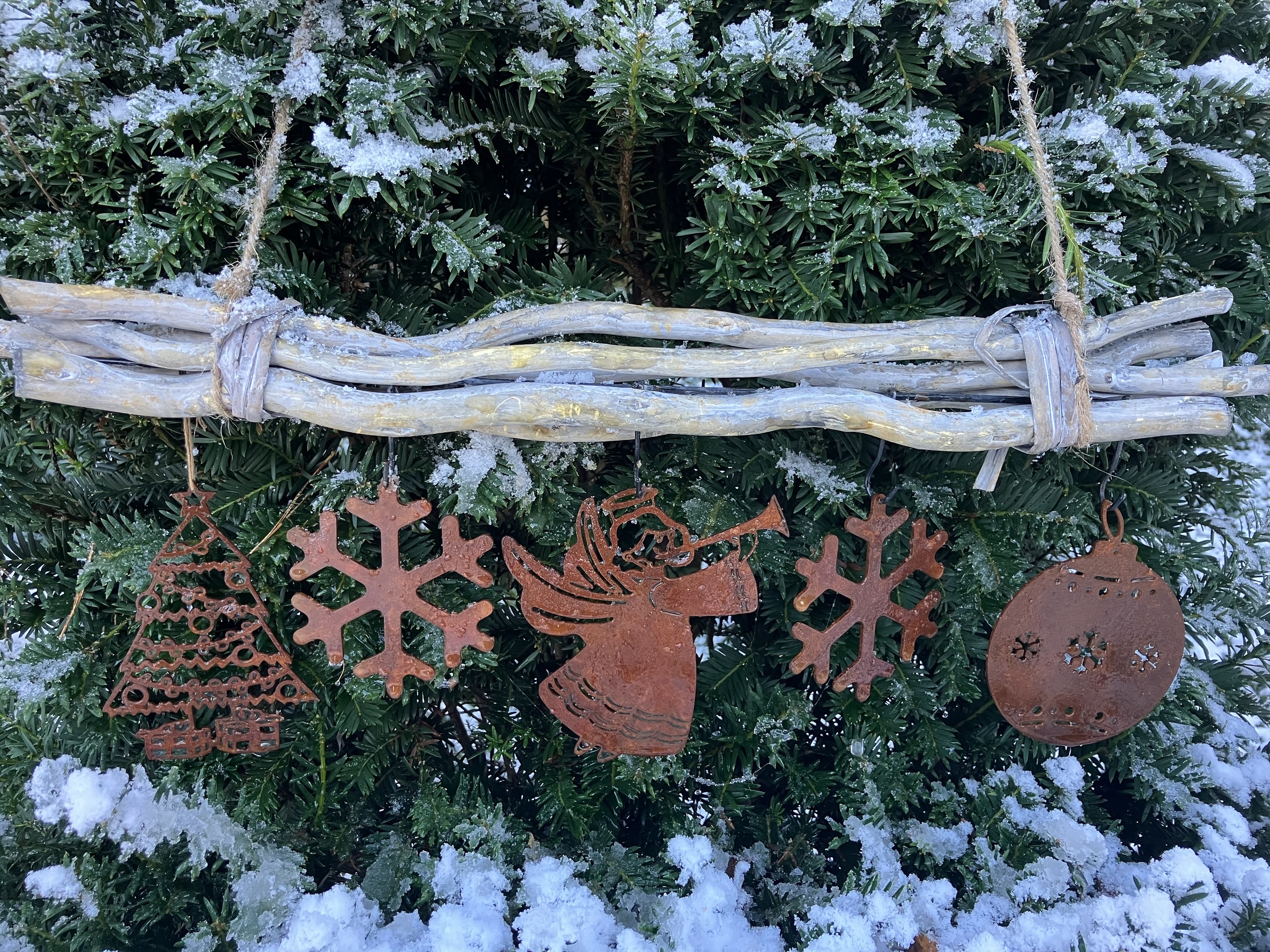 Zawieszka choinka w wersji mini może służyć jako świąteczna dekoracja ogrodowa/domowa/choinkowa bądź dopełnienie świątecznego stroika. Naturalna rudawa powłoka ciekawie komponuje się z drewnem, a zwłaszcza brzozą.